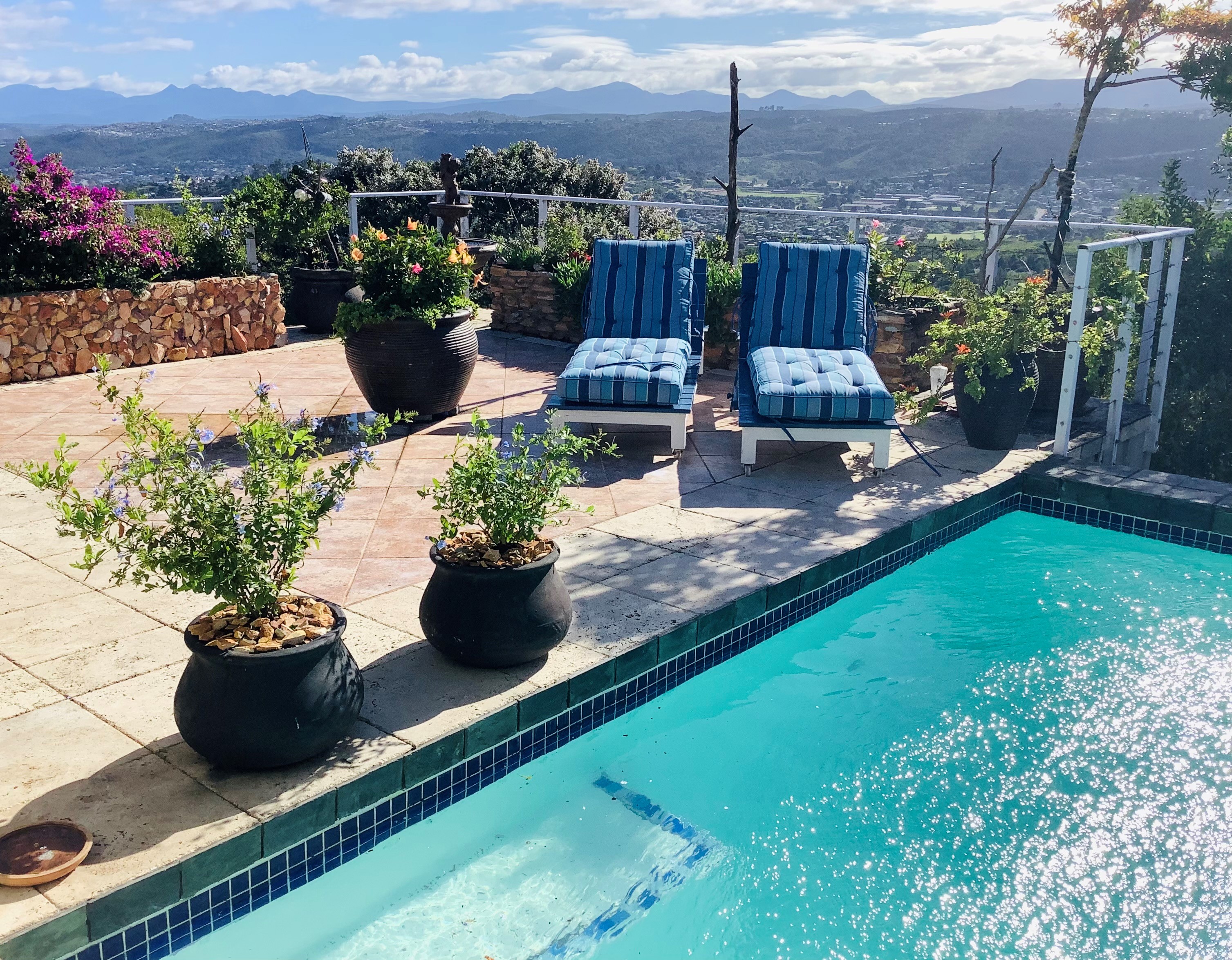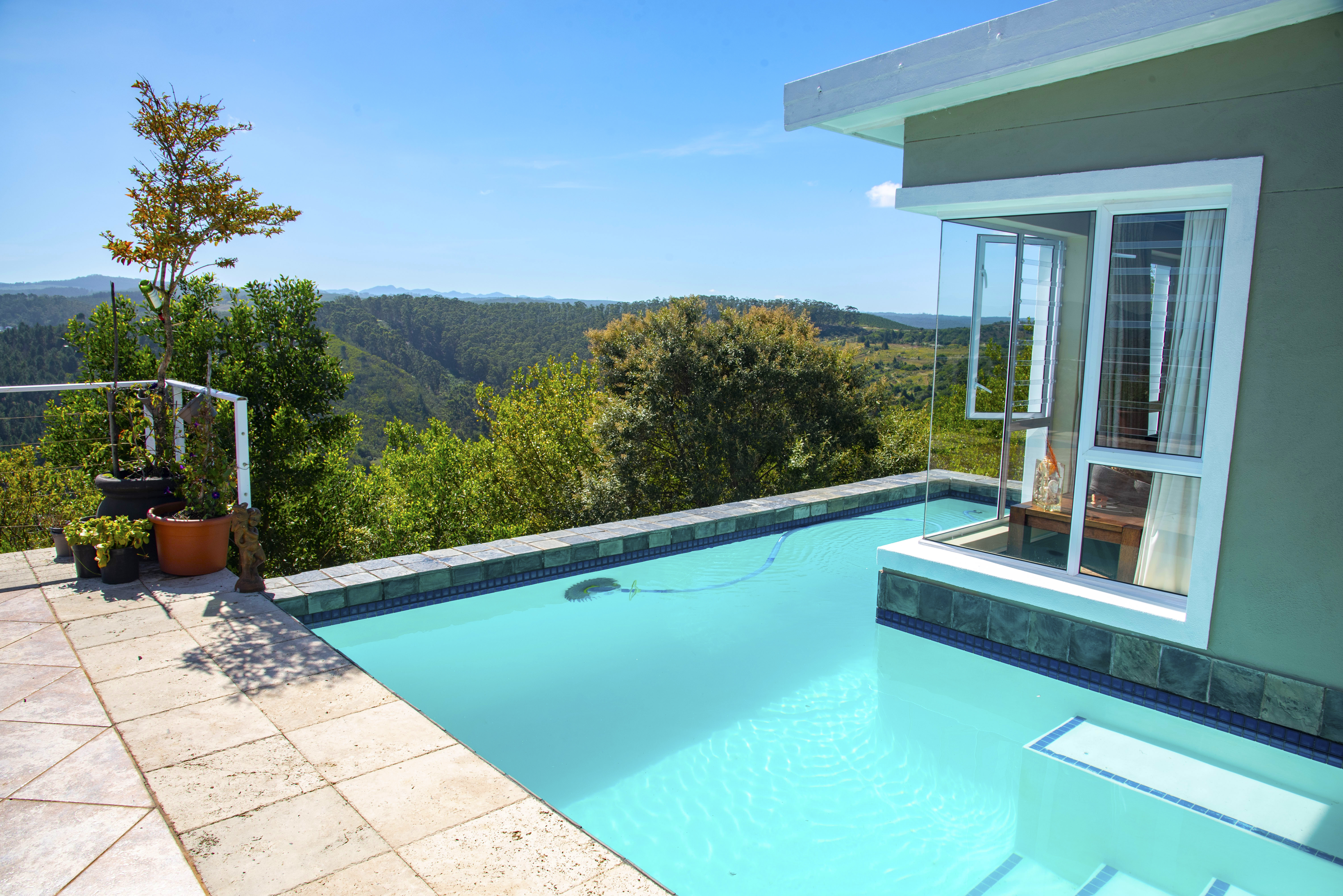 Cool off in our stunning L-shaped pool – perfect for lazy afternoons in the sun or a refreshing dip after exploring the Garden Route. The pool is designed for both swimming and lounging, with views that stretch across the trees to the water below.